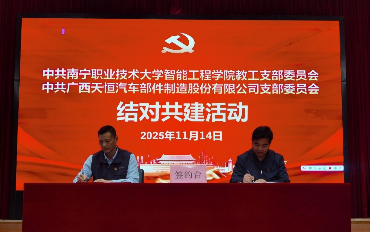 11月14日,南宁职业技术大学智能工程学院教工党支部与南南铝集团广西天恒汽车部件制造股份有限公司(以下简称“天恒公司”)党支部,在天恒公司举行“党建引领聚合力,结对共建促发展”主题结对共建活动。此次活动不仅是双方前期党建引领合作成果的深化巩固,更标志着校企协同发展迈入制度化、常态化新阶段,为区域产业...【查看详情】