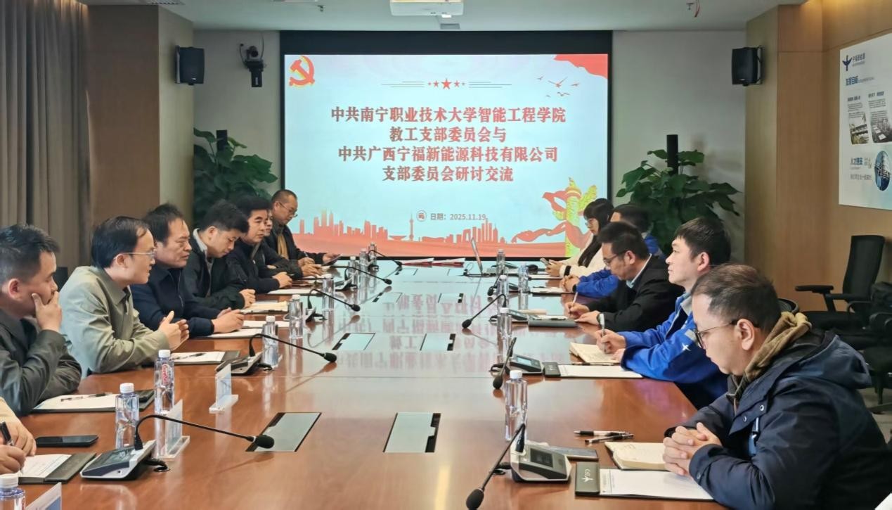 为深入学习贯彻党的二十届四中全会精神,落实立德树人根本任务,11月19日下午,在学院党委统筹指导下,智能工程学院教工党支部一行赴广西宁福新能源科技有限公司(以下简称“宁福公司”),开展研讨交流并举行党建结对共建签约仪式。
