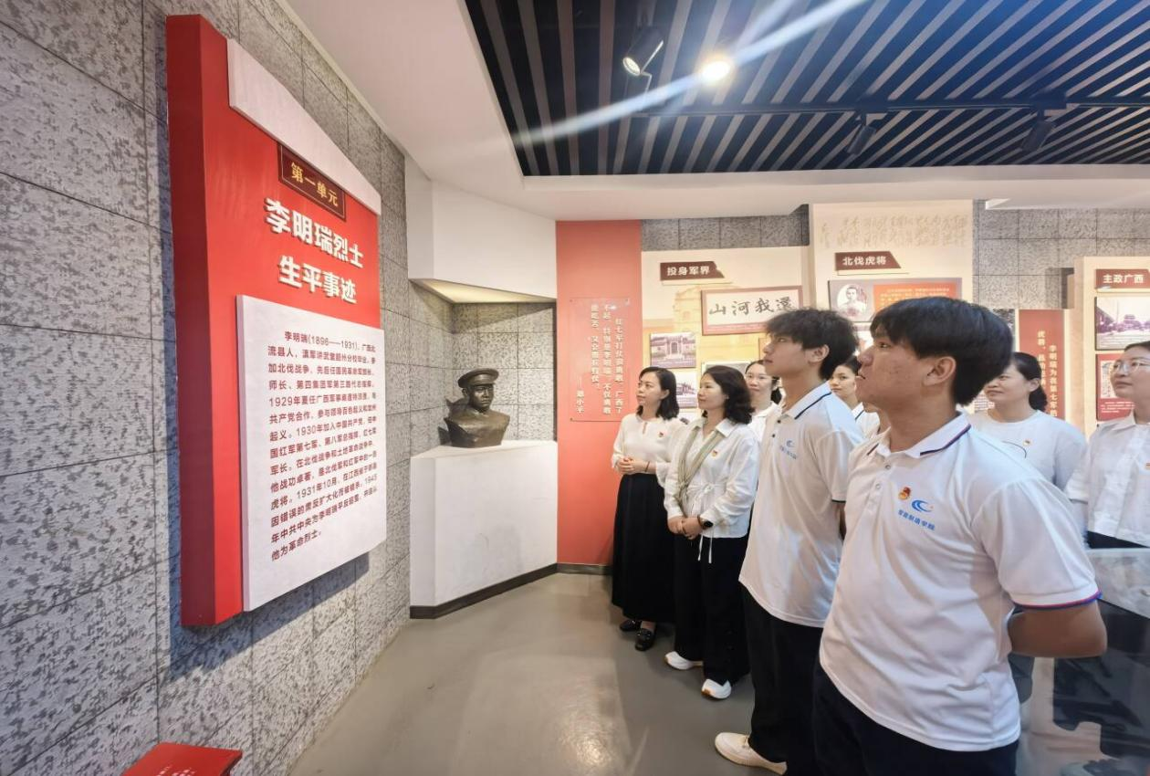 活动现场,全体党员怀着崇敬之心,向革命烈士默哀、敬献鲜花,在肃穆氛围中追忆革命先辈峥嵘岁月,感悟他们为民族独立、人民解放挺身而出、舍生取义的崇高革命精神。随后,党员们走进纪念馆,通过浏览馆内史料,深入学习红七军、红八军总指挥李明瑞及农民运动杰出领导人韦拔群的光辉革命历程,体悟革命先辈的初心与担当。