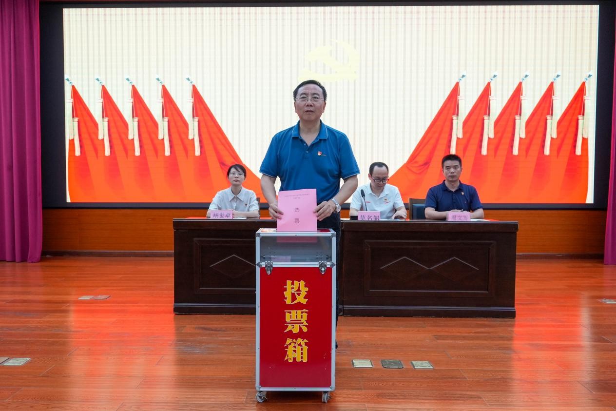 图2 学校党委书记蹇兴超以普通党员身份参会投票(南职融媒 宋亦乔/摄)