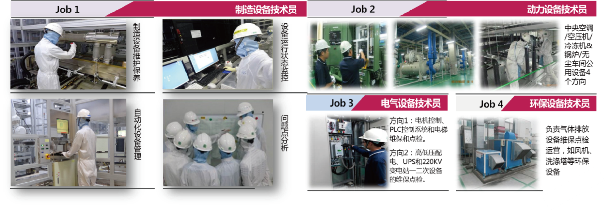 1. 大型高精设备操作、保养、维修; 2. 设备定期作业,如巡视、点检等; 3. 设备故障排查及报告撰写等; |
