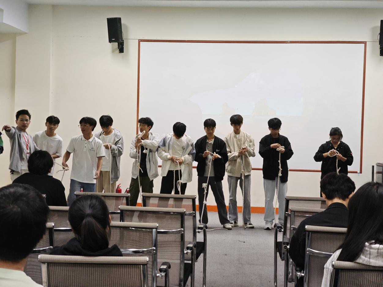宿舍长现场练习绳结制作(庞梦婷/摄)