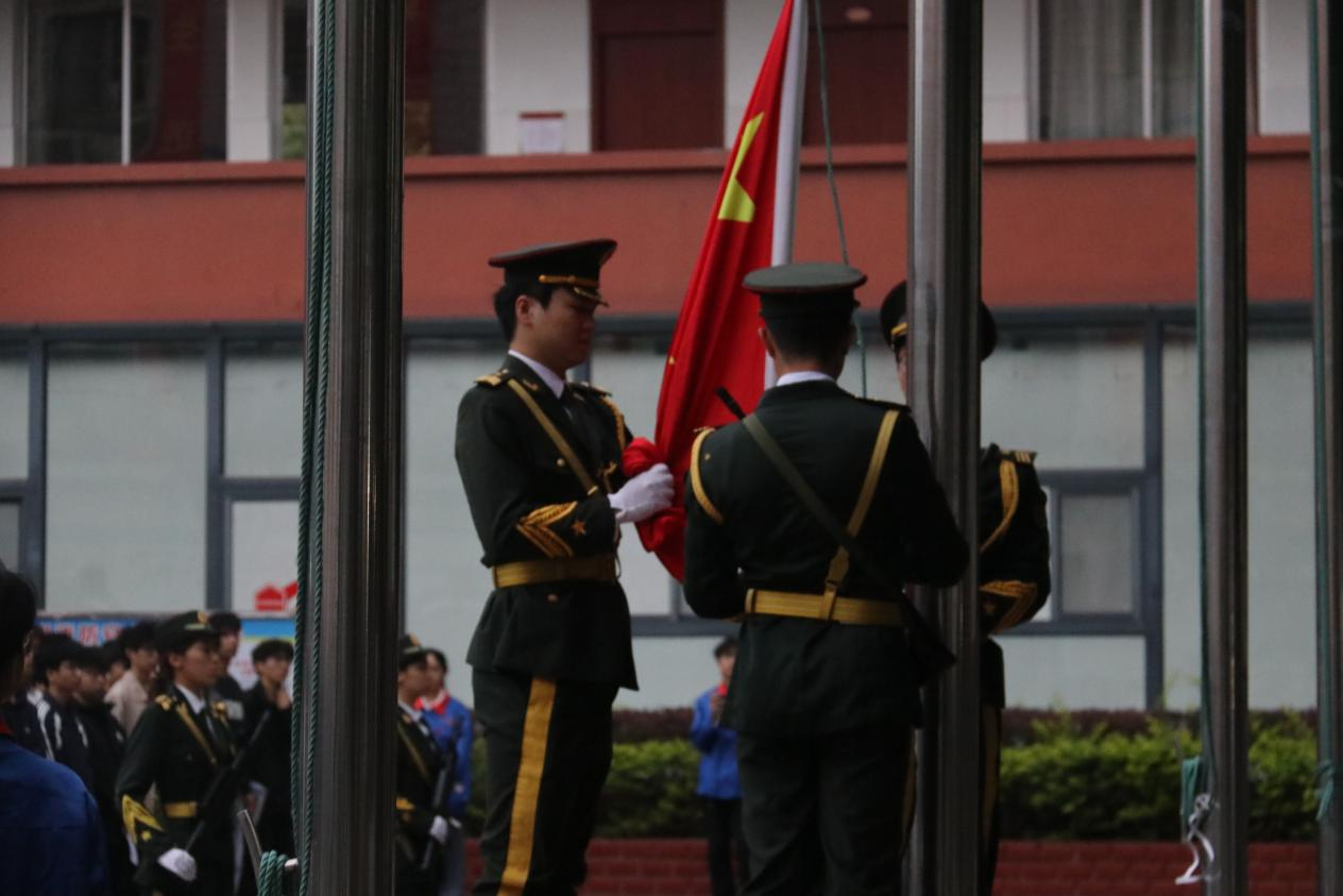 伴随着雄壮的《义勇军进行曲》,五星红旗冉冉升起,全体师生肃立注目、高唱国歌,满怀崇敬与赤诚,接受深刻的爱国主义教育。