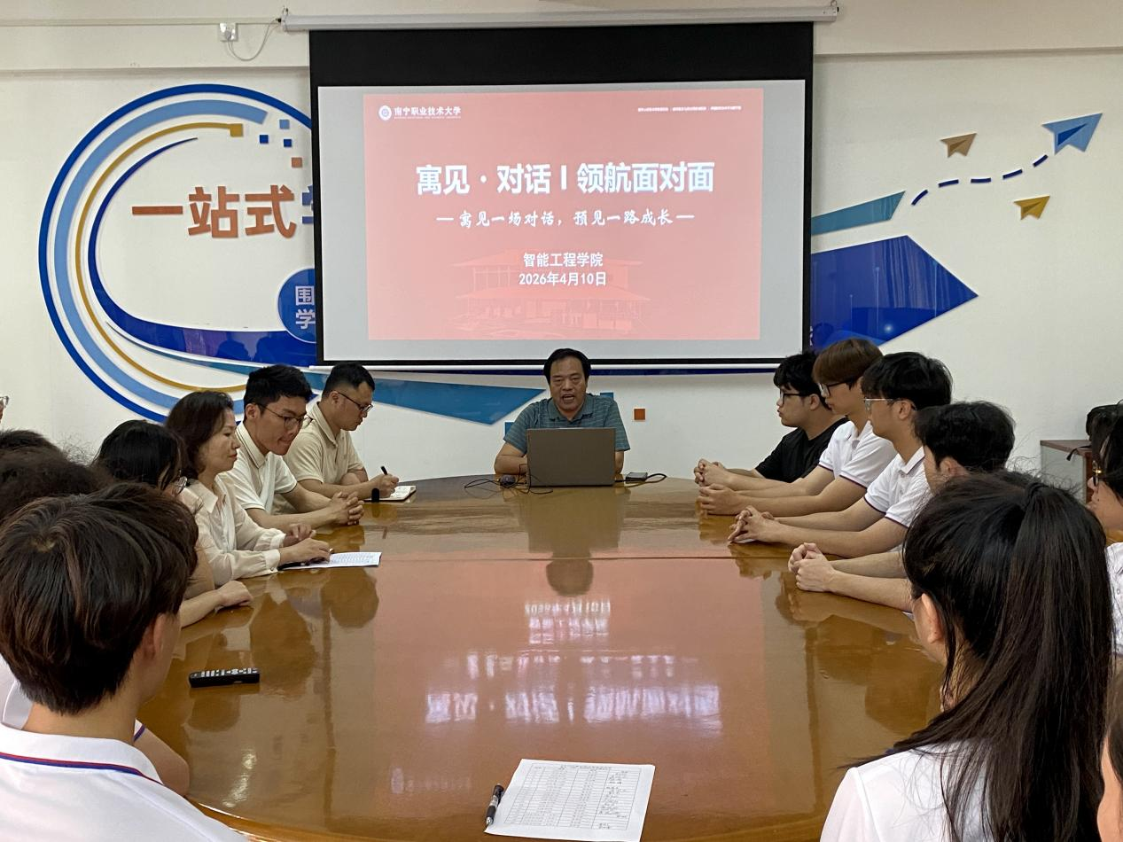 4月10日下午,智能工程学院在一站式学生社区举办“寓见・对话|领航面对面”系列活动之“以两会精神为指引 助力青年就业创业”主题师生座谈会。学院党委书记李光荣、学生服务中心副主任陆日谊出席,24级辅导员及学生代表参加。