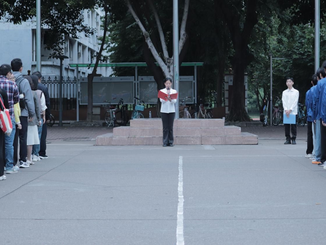 升旗仪式结束后,2024级机器人1班学生谢思婷作为学生代表,在国旗下向全体师生分享了《国旗法》等法律法规的制定背景与核心内容,解读了维护国旗尊严的重要意义。同时,她向全体同学发出倡议:“要主动学习法律知识,不仅要提升自身法律意识,更要学会运用法律武器维护自身合法权益,将规则意识融入日常言行,做知法、懂法、守法的新时代青年。”