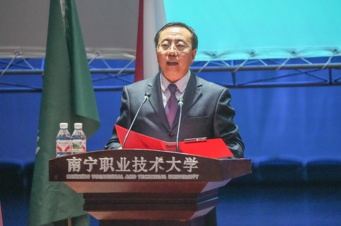 黄春波在致辞中表示,人工智能机器人系统集成及应用是推动新一轮科技革命与产业变革的关键技术领域。南宁职业技术大学始终坚持以服务区域发展和国际合作为使命,深化“岗课赛证”综合育人,大力推进“职教出海”,积极构建面向东盟的职业教育合作体系。本次大赛是学校展示办学实力、促进国际技能交流的重要窗口,也是对学校“以赛促教、以赛促学、以赛促建”教育理念的生动实践。