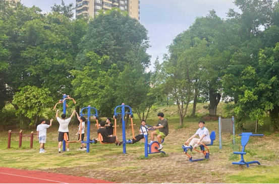 活动中,同学们热情高涨,有序参与各项运动:有的以宿舍为单位组成跑步小队,沿着田径场跑道匀速前进,脚步声与欢呼声交织成青春的旋律;有的自由组合使用田径场的单杠、双杠、仰卧起坐板等器材开展力量训练,互相指导动作要领,氛围轻松热烈。“平时总在宿舍赶作业、刷手机,难得集体出来运动,不仅舒展了身体,还感受到了团队的活力!”班里同学说道,“这样的运动比独自锻炼更有动力,希望能一直坚持下去。”