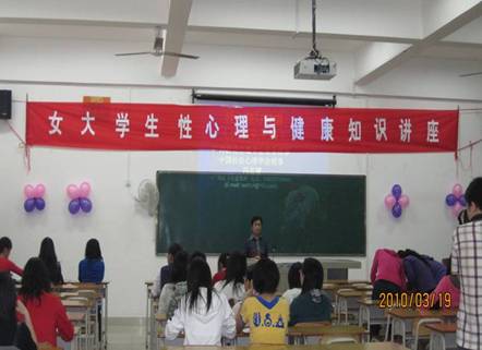 为了让广大女生科学了解性知识,发展健康的性心理,树立正确的性观念,学到更多的青春期知识、性心理常识,更好的保护自己,在今后的生活中更加“自尊、自爱、自强”。2010年3月19日晚19:00-21:00我院在第四实训楼205教室举行了《女大学生性心理与健康》女性知识讲座,此次讲座我们特别邀请了高级心理保健师、中国社会心理学会理事冯忠娜教授主讲,讲座取得了圆满成功。
