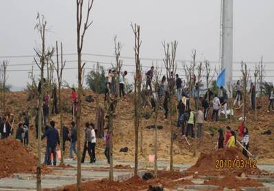 2010年3月12日是我国第32个植树节,为响应国家号召,我校于3月11日组织师生参加了由相思湖管委会开展的主题为“共建高职院校,打造生态文明和谐相思湖新区”的新区全民义务植树活动。相思湖新区管委会领导及我校领导、学校副科级以上干部、百名学生代表及管委会全体成员共300多人共同在我校二期一组团中心广场种植乔木600株。我院党总支书记、院长黄幼岩带领我院部分学生参加了本次植树活动。
