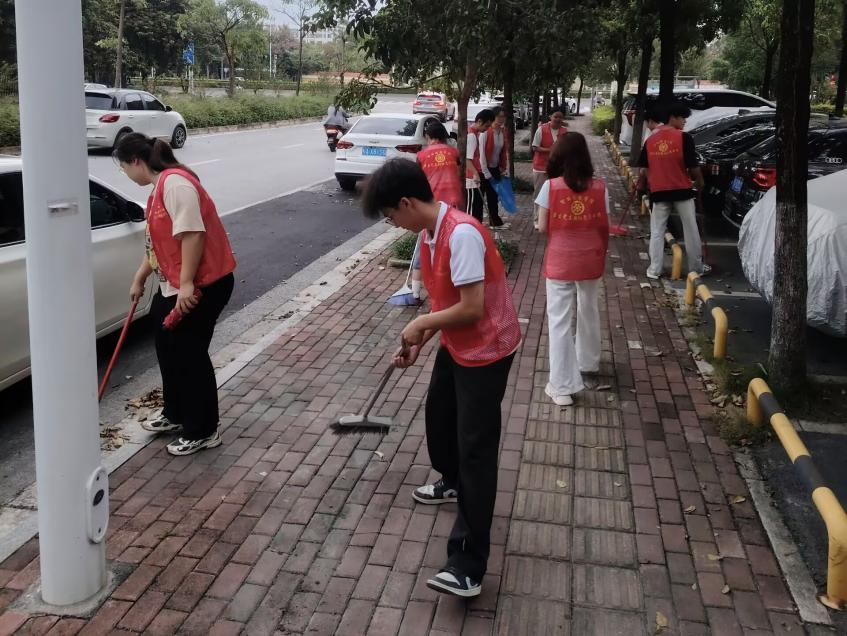 活动前期,两班团支部提前与社区工作人员开展精准对接,明确清扫范围与重点区域,并统一准备手套、垃圾袋、垃圾夹子等清洁工具,为活动有序开展筑牢基础。活动中,团员青年们迅速组建5支志愿服务小组,以分工协作的方式,对社区主干道、休闲广场、绿化带等公共区域开展全方位清扫。面对草丛中的烟头纸屑、路面缝隙内的隐藏杂物,大家弯腰俯身、细致捡拾,不留任何卫生死角,遇到行动不便的居民咨询垃圾分类知识时,团员青年们主动上前耐心讲解,积极传递绿色环保理念。