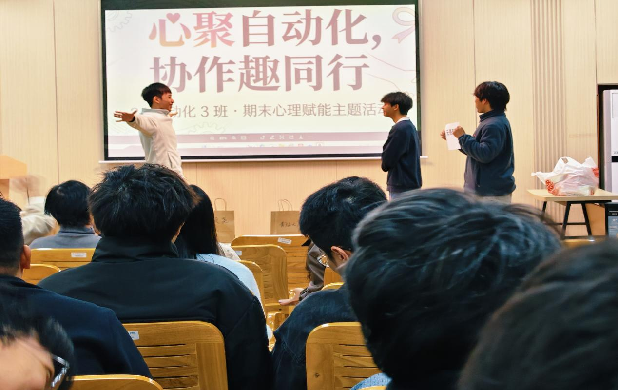 12月24日,智能工程学院24自动化3班在4栋一站式学生社区开展“心聚自动化,协作趣同行”期末心理赋能主题活动。全班同学踊跃参与、全情投入,在趣味互动中舒缓期末压力,在协作共进中凝聚班级力量。