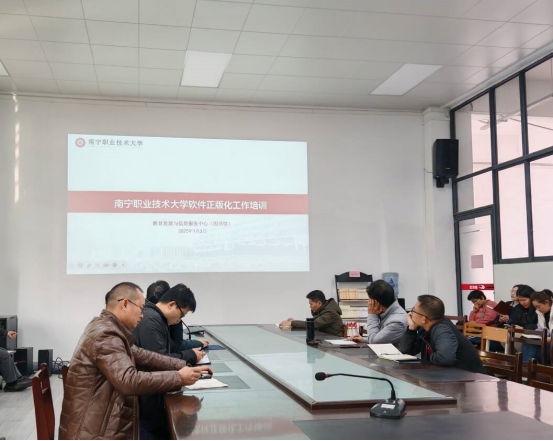 为进一步推动教育系统软件正版化工作,1月10日,学院组织开展了一场关于软件正版化工作要求的专题培训。此次培训由学院实训中心牵头,旨在传达上级文件精神,明确学院软件正版化工作的具体要求和实施步骤。全体教职工进行软件正版化工作要求培训(蓝成/摄)实训中心韦科陆主任首先传达了《自治区教育厅办公室转发关于做...【查看详情】
